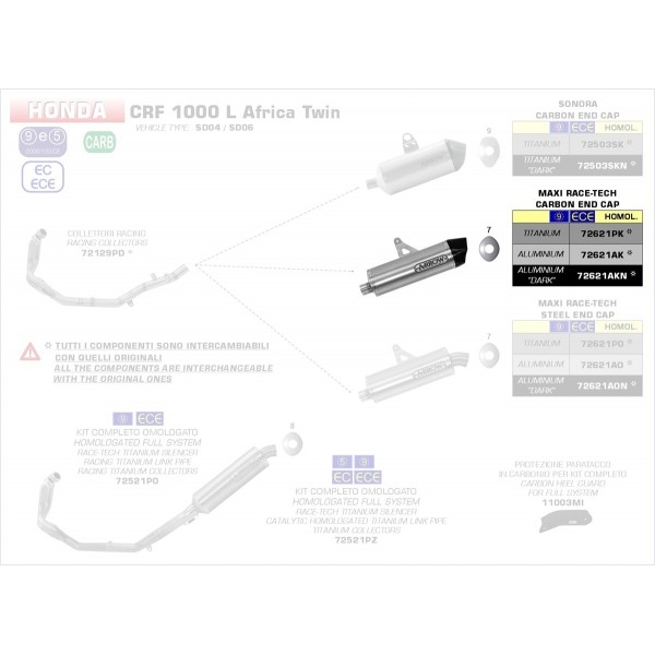 ARROW HONDA CRF 1000 L AFRICA TWIN '16 HOMOLOGATED ALUMINIUM DARK MAXI RACE-TECH SILENCER WITH CARBON END CAP | 72621AKN