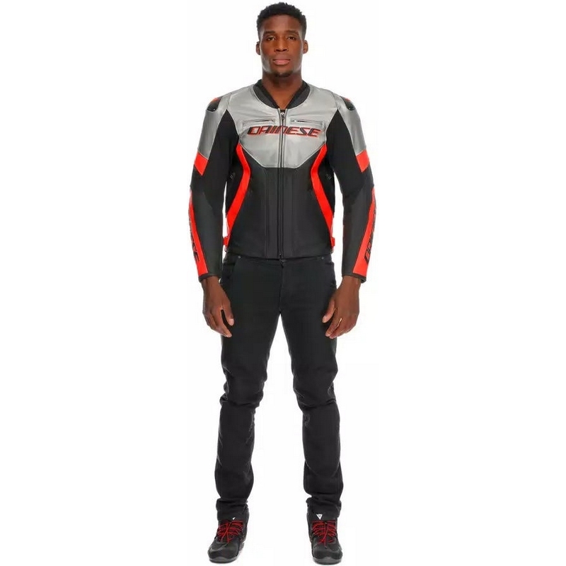 Dainese RACING 5 LEATHER JACKET, SILVER/BLACK/RED-FLUO | 2015300031-245