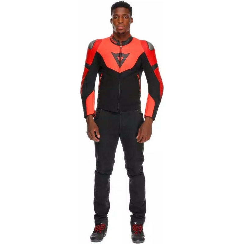 Dainese IPERATTIVA LEATHER-TEX JACKET, RED-FLUO/BLACK | 2015300036-779