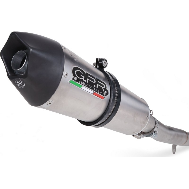 GPR EXHAUST SYSTEM COMPATIBLE FOR BMW S 1000 RR 2015/16 0 Homologated new GPE 50° ANNIVERSARY Slip-on kit with removable db killer (baffle) for racing use,it include specific link pipe, brackets, holder and fasteners. Pipe work totally stainless steel made (Aisi 304), while silencer is titanium made with exit cap Ergal made with pentagonal 50° Anniversary cover. Developed from GPR thanks to Moto GP and SBK races experiences, the system has a conic shape from round to oval,it start with Diam. 96 to 130mm, weight about 1,65 kg depending from motorbike of destination. GPR provide original homologation documents and instructions available as drawings or video or pictures books. If item is used in homologated configuration it doesnt require mapping, it is possible use panniers and central stand and sonda lambda boss is included when necessary. Available many sound file and pictures gallery,product is hand made in Italy, produced under European directives,it is street legal and it has 2 years of international warranty