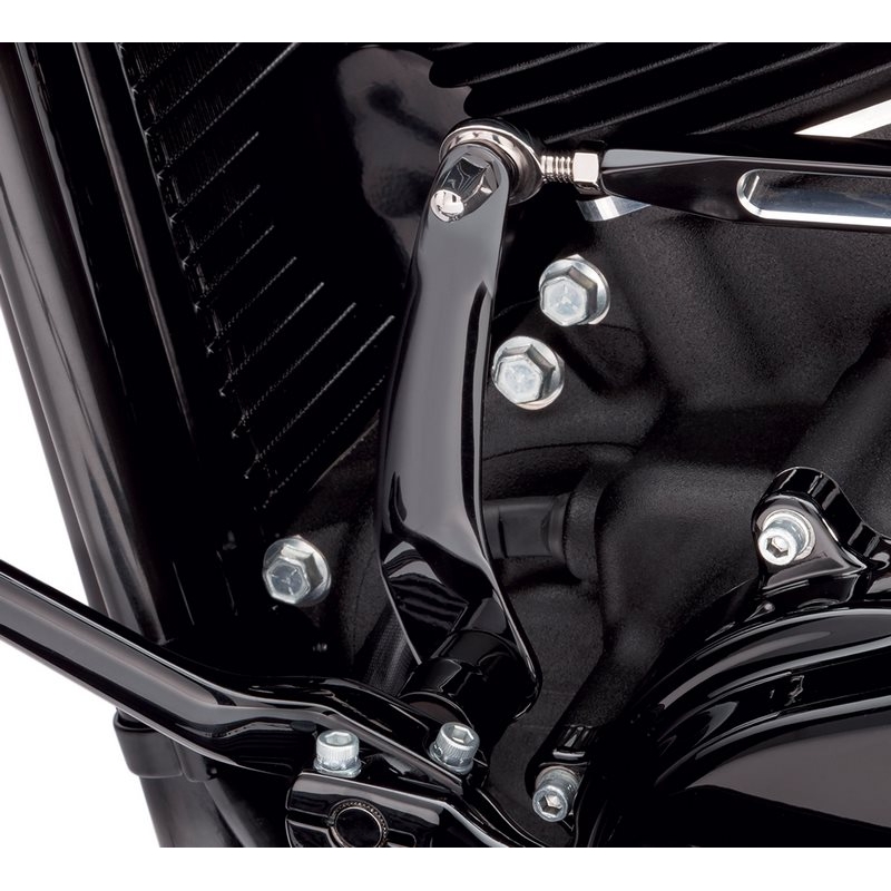 This shift rod lever replaces the Original Equipment or Accessory chrome lever to create a cohesive, black-out look across your bike.