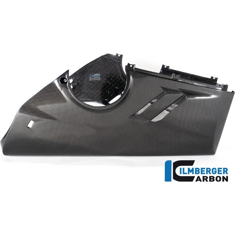 The bellypan fits perfectly with the attached low exhaust System and sidestand. The high-gloss surface pronounced the sporty character of the Panigale V4 / V4 S 2022In order to obtain a harmonious overall picture, the fiber layers are inserted and aligned in the mold by experts. The carbon part fits perfectly into the surrounding shapes of the motorcycle. The more of our parts are installed and combined, the more overwhelming the result.For our carbon we only use prepreg fabric specially produced for this purpose, which is also used in a similar form in Formula 1 and space travel. The material, which is elaborately hand-laminated and cured in several stages in the autoclave, not only impresses with its unique appearance but also with its unique technical properties. With the same volume, it has a specific stiffness three times as high as steel and at the same time, due to its particularly low density, only a fraction of its weight.In order to optimally protect this high-quality material from all kinds of environmental influences, we are the only carbon manufacturer worldwide to use a specially developed plastic coating on all surfaces. In combination with our clear varnish. This ensures a previously unattainable and unique depth effect, which allows the high quality of the material to come into its own.So that not only driving but also screwing is a pleasure, we only use the original fastening points for this part.The facts:- with German ABE- Sealing of all surfaces (inside and outside) with a unique coating to protect against environmental influences of all kinds- Additional glossy clear lacquer coating on all visible surfaces - optimally protected against UV light- Delivery ready for installation- made of prepreg material specially produced for Ilmberger- Manufactured in-house according to ISO 9001- Attachment using the original attachment points- quick and easy assembly