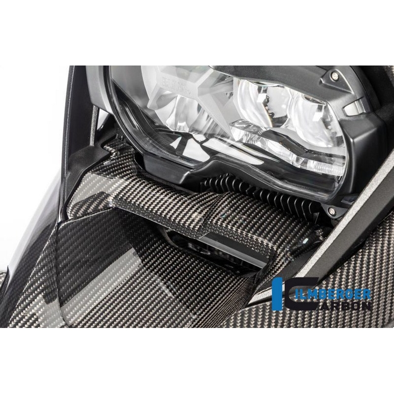 The Windchannel on the front beak in Carbon for the BMW R 1250 GS (LC) from MY 2019 is a direct replacement for the original component and contributes mainly to weight saving on the motorcycle (up to 70% less) and a higher stiffness of the parts.