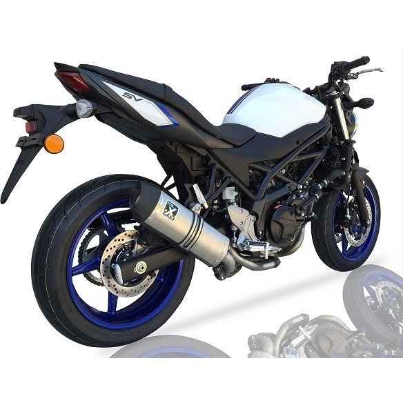 Silencer manufactured from AISI304 stainless steel with a satin polished finish.Asymmetric and conical end cap, manufactured in aluminum with high temperature black lacquer.