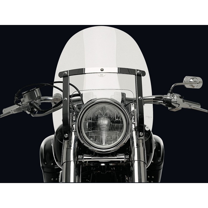 The NATIONAL CYCLE Windshield Ranger Heavy Duty is the plainest version of an US chopper windshield: Slim line, protecting but compact height and high gloss chrome-plated steel carrier. This 4 mm strong Quantum coated high-tech Lexan® polycarbonate windshield in OEM quality is ten times more scratch-resistant and twice as much break-proof and UV-resistant than high impact acrylic. This high end screen is manufactured in the US, easy to install and absolute custom-fit owing to a type based carr
