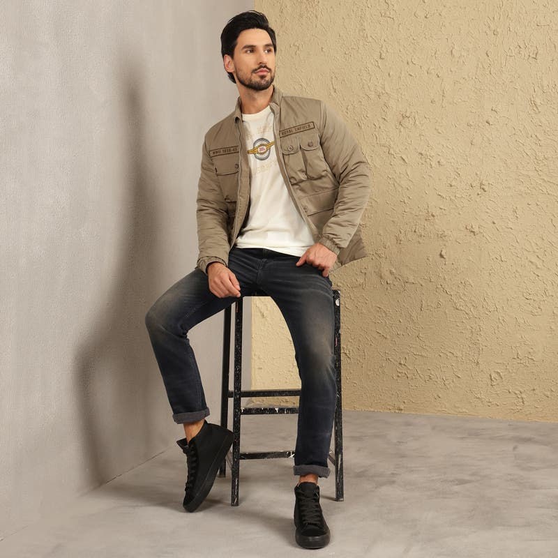 A utility jacket with polyfill inside, this is your safest bet to stay warm on winter days. It has been crafted to combine style, comfort and functionality. Get this jacket to elevate your wardrobe and look sharp in the winter season.nimal in its appeal and authentic in its aesthetic, this jacket is your safest bet for chilly days. With a mild polyfil filling, this jacket is the winter staple you were looking for.