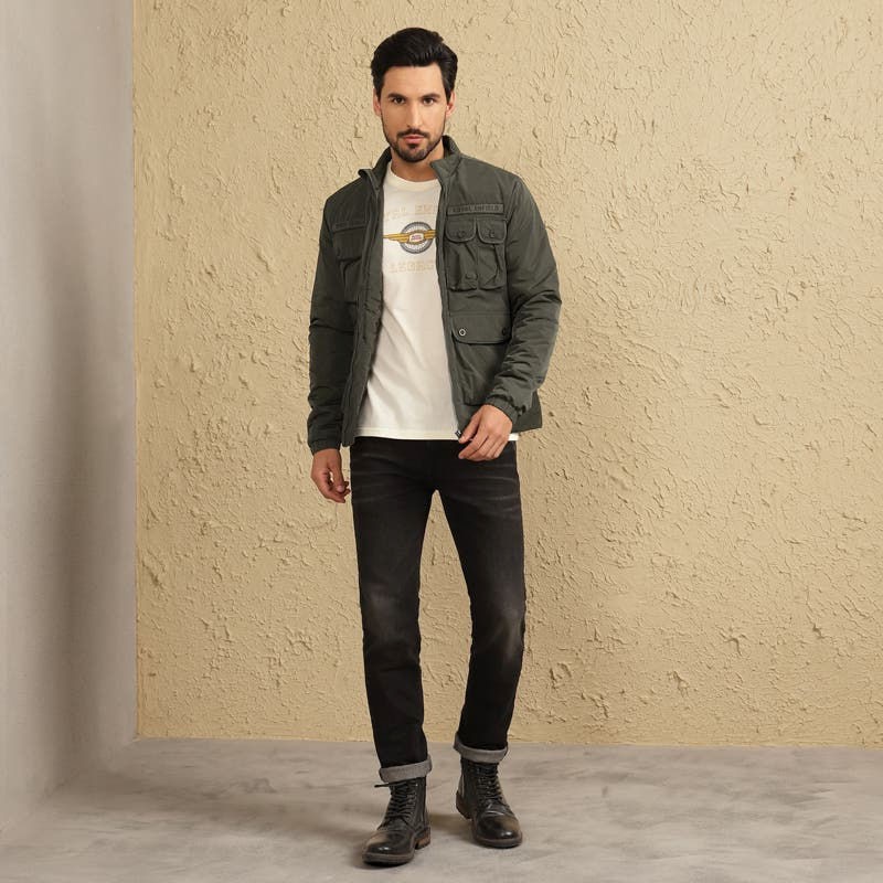 A utility jacket with polyfill inside, this is your safest bet to stay warm on winter days. It has been crafted to combine style, comfort and functionality. Get this jacket to elevate your wardrobe and look sharp in the winter season.nimal in its appeal and authentic in its aesthetic, this jacket is your safest bet for chilly days. With a mild polyfil filling, this jacket is the winter staple you were looking for.