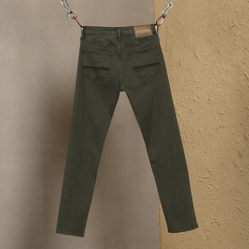 Made for those who seek adventure, this pair of jeans is tailored to match your riding style and endure long journeys. Stretchable, comfortable and well-fitted with an olive overdyed look and a soft finish, it will elevate your daily wardrobe.