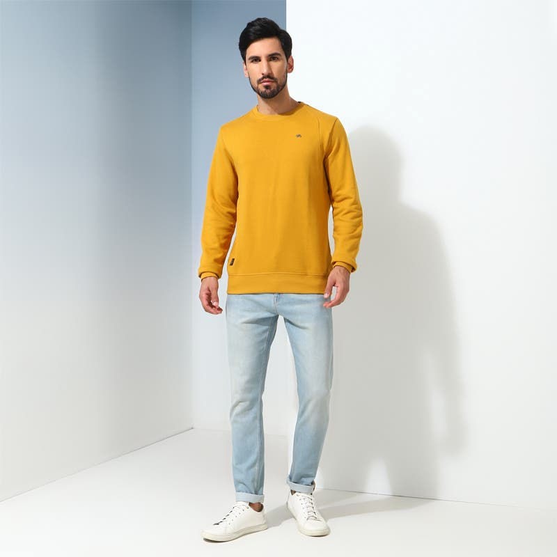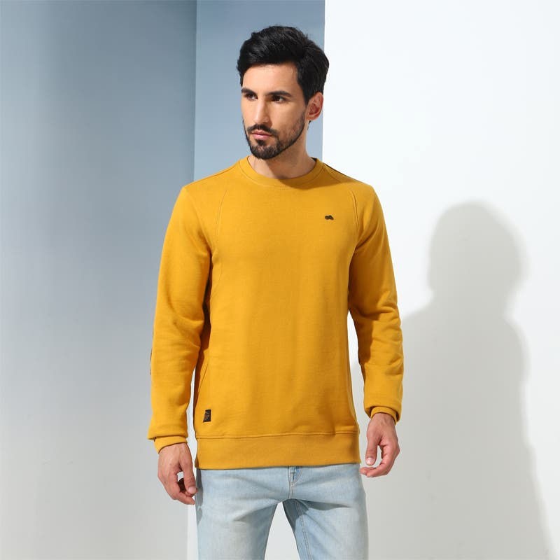 Unwind in style on your laid back weekend adventures with our Sweatshirt. Made with 100% Cotton Terry, the sweatshirt provides an ergonamically designed Cut-N-Sew shoulder for enhanced comfort and functionality. With subtle design elements such as metal motorcycle rivets and coduroy patches on the elbow, the sweatshirt stands out as the perfect addition to an adventurer's wardrobe.