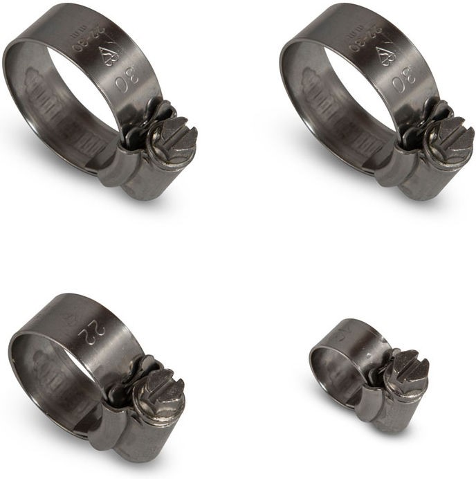 These hose clamps are entirely made from marine-grade 304 W5 stainless steel and have a 13mm wide band which increases their clamping force.